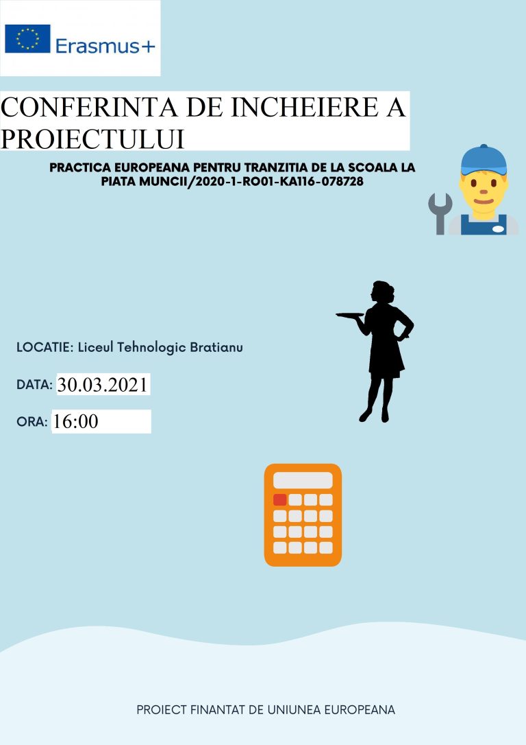In data de 21.3.2022 a avut loc la Sala de Festivitati a Liceului Tehnologic Brayianu,conferinta finala a proiectului.La acest eveniment au participat 42 de persoane din care:10 elevi participanti la